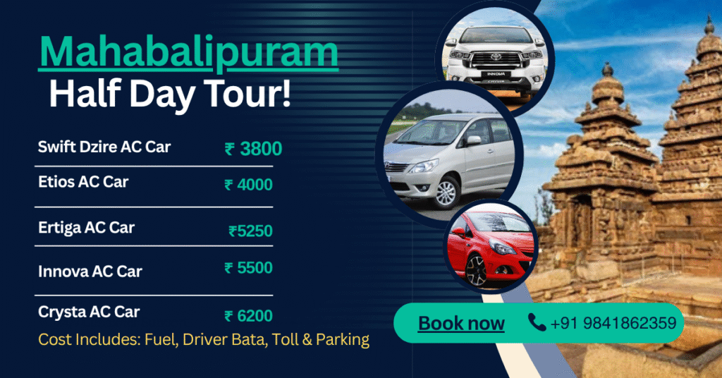 - 9.00 AM: Chennai City Pickup to Mahabalipuram