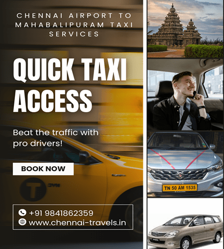For booking your Chennai Airport to Mahabalipuram taxi service, whether for a drop, round trip, sightseeing, events, corporate meetings, or a holiday trip, please call or WhatsApp us at +91 9841862359.